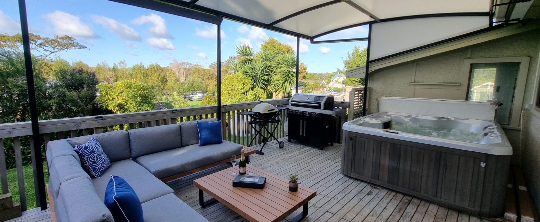 The final part of the puzzle was framing for the curtains, this required square posts to be facing each other, and with angles present everywhere, a multitude of double-posts, flashings and static panels were installed in order to make this canopy work with the sides.